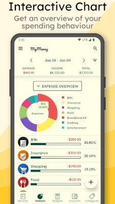 How to manage money and track expenses with MyMoney? It's simple, just add an expense record when you are spending somewhere. MyMoney will take care of it. See every dollar you spend to pay a bill, buy a coffee or anything with ease. MyMoney is your ultimate budget planner app that helps you plan monthly budget, achieve your budget goals and save money effectively. Too much spending on coffee? Set a budget on coffee and surely, you would not cross the budget goal. This limits your money use and helps you control your spending behavior. If you really want to track and save your money, MyMoney is the money tracker app that can really make it simple and easier for you.