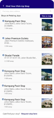 3.Select Your Stops: Choose your pick-up and drop-off locations from our list of stops.