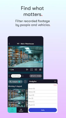 Protect your organization against recorder failures, theft, or damage with secure offsite cloud backup. Record locally and to the cloud, or capture directly to the cloud at up to 4K (8MP) resolution. Access video anytime via the app or web platform.